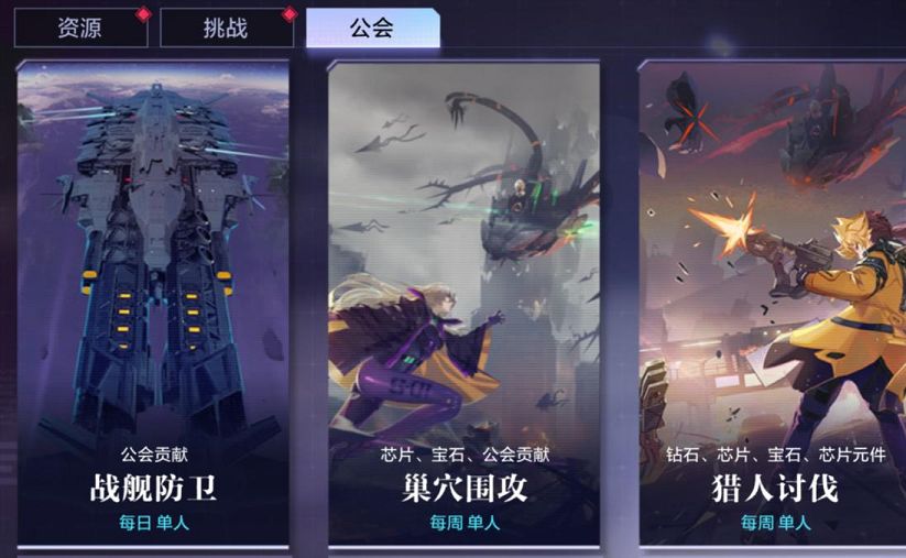 猎人讨伐玩法与巢穴围攻、战舰防卫三个玩法一起为时空猎人3的公会玩法,都是能够让玩家获取工会贡献值的地方,但这个模式更注重玩家的个人输出能力,因为会更具玩家的伤害数值进行排名,所以各位玩家需要对自己的战斗力有一定的认知,也需要玩家对于角色的练度有一定的了解。