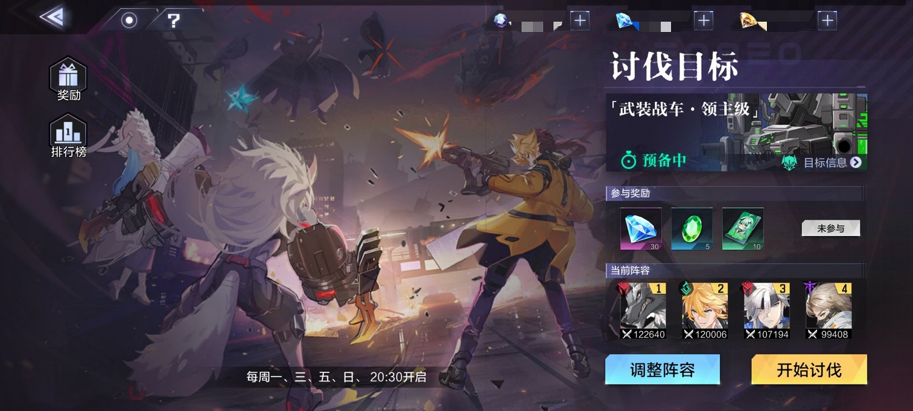 进入讨伐页面即可看到讨伐目标,当前玩家的阵容配置以及参与奖励。