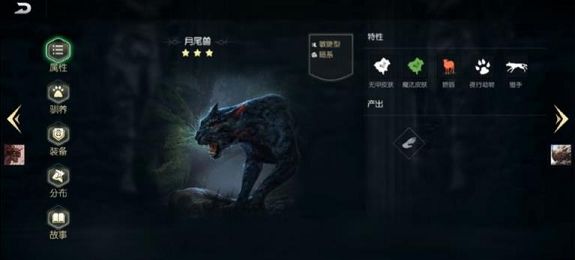 作为野兽系的一只宠物,月尾兽能提供不俗的暗系伤害,战斗时能克制不少的圣物,同时它也是陆地上速度最快的宠物,小伙伴们如果需要跑图的话,它就是一个很好的选择。不过不需要注意一下的是,月尾兽的血量不高哦。
