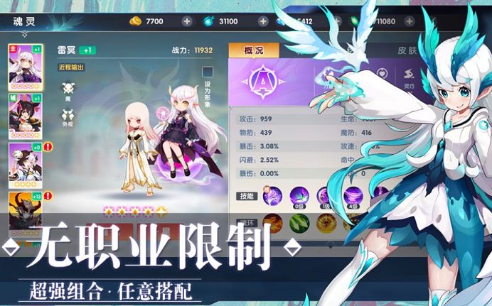 4、技能自由搭配:游戏中我们的连招技能都是可以随意配搭的,大家可以体验不一样的操作手感。