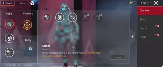 所谓的英雄成长(Legend Growth)系统其实就是一个类似于符文的装配系统,随着英雄成长等级的提升我们能够解锁更多的芯片并且获取其加成效果。玩家的每一个英雄都能够装配最多五个芯片,分别是三个通用芯片(Perks)+一个终结芯片(Finishers)+一个能力芯片(Ability)。也可以说是游戏中角色的被动技能了。