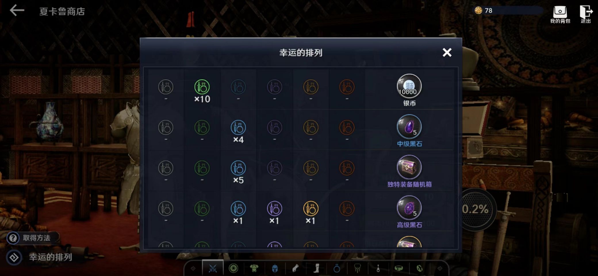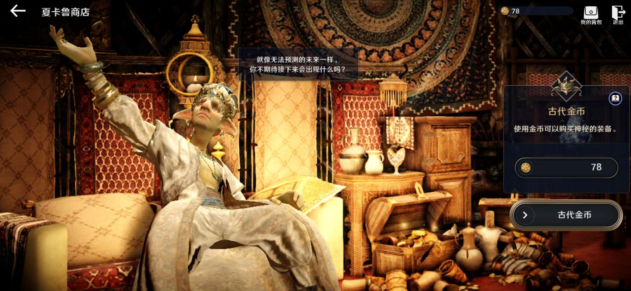 当在地图中与游戏人物的亲密度达到90以后,他也会给珍珠和古代金币。古代金币可以在游戏中用来抽奖,抽奖能抽到的东西也是比较丰富的,运气好的话可以抽到红色装备,如果是十连抽的话更是有可能获得珍贵的稀有物品。玩家也可以点击右上角菜单在夏卡鲁商店中用古代金币购买自己所需的武器装备。