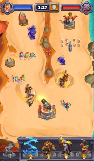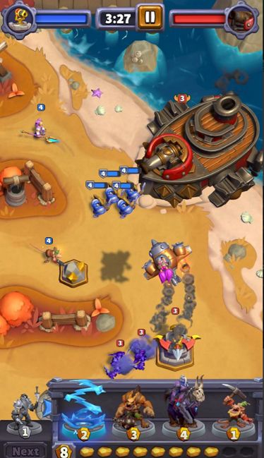 2、游戏采用策略塔防的玩法,我们需要通过使用策略,巧妙的布置防御建筑和利用兵种的克制关系,才能击败敌人,夺取更多的资源和宝箱哦!