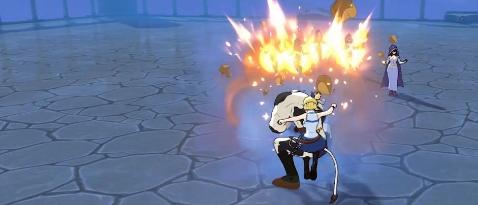 然后是露西,动漫中的女主,纳兹的老搭档了。经典露西是SR品级的,也比较容易获取。游戏里对露西的还原还是很到位的,不论是外貌还是技能。核心技能绳缚术、飞踢、塔罗斯猛突。很明显绳缚术是控制技能,能够限制敌人输出与位移。2技能飞踢有击退的效果。猛突则可以召唤塔罗斯,伤害、眩晕、击退都有算很全面了,4星解锁大招强化版的猛突。整体上来看,露西还是很很强的,高伤害、短CD,比较全能的选手。