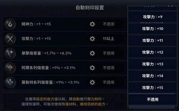 首先我们在魔力印刻的时候会有一个说明,点左上角的目录按钮后,大家可以看到里面攻击力和防御力的优先级最高,因为黑色沙漠这款游戏的最主要实力验证就是战力,战力=攻击力+防御力,所以其他属性的优先级比攻击防御要低。