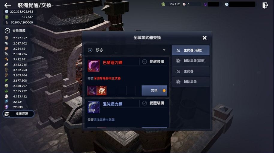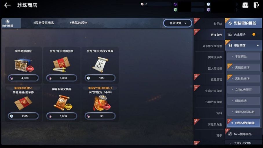 第二次就是从珍珠商店中购买 :需要角色觉醒/继承券一张、武器交换券2张 ,每个角色第一次购买转换券为银币1亿,第二次以后都是6000黑珍。如果你拥有的主副武器为觉醒武器,记得在选单【觉醒装备】处打勾。