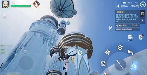 到达任务地点之后,发射钩锁勾住空中的热气球爬到第一个热气球上面,然后在利用钩锁爬到最上面的热气球然后跳到指定的地点,就可以了。地点就在最上面热气球的右方,从最上面的热气球就可以直接跳上去非常简单。