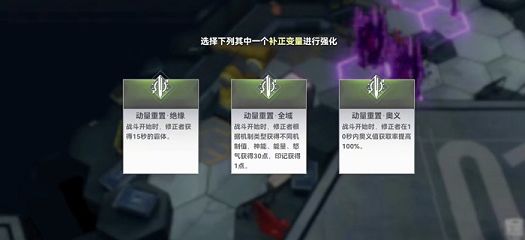 消除裂缝之后可以在三个补正变量中进行选择,其实所谓的补正变量就是当前关卡能够生效的buff加成效果,这里出现的三个补正变量是完全随机的,大家根据自己的需要来进行选择就可以了。第一个乱流之隙破除之后下面会有两个,这里我们选择任意一个进行破除即可,不需要一开始就将两个全部打掉。再往前有三个乱流之隙,选择一个打掉就可以了。