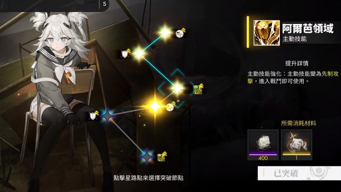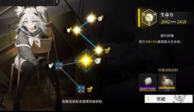 首先玩家们需要选择你要突破的角色,接着下方有一个光灵突破的按钮,点击就可以进入突破页面,当进入页面后你们会发现六个点。
