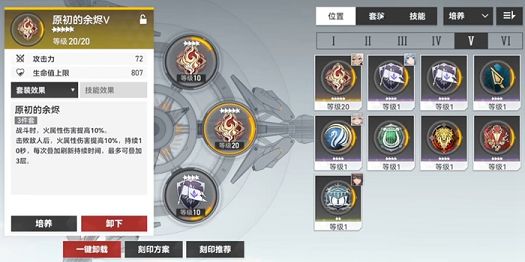 阿修罗这个角色的刻印其实非常好选择,首先必带的就是原初的余烬这一套刻印。在目前的版本中原初的余烬可以说是火属性角色增伤的首选刻印了,对于阿修罗来说也是如此。阿修罗的各项技能本身就带有非常强劲的火属性伤害,原初的余烬不仅可以直接为阿修罗提供固定的10%火属性增伤,而且在战斗中击杀敌人之后可以叠加3层的额外增伤效果。