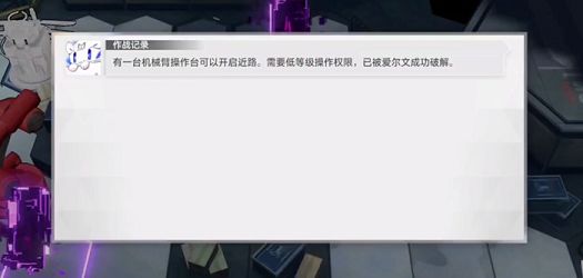 在因果观测的关卡内有一些机械臂,机械臂的下方一般都会有集装箱等障碍物需要进行移开才能够到达终点从而顺利通过因果观测的关卡。在作战记录中也有着“有一台机械臂操作台开启开启近路,需要低等级操作权限,已被爱尔文成功破解”的字样,那么想要顺利完成因果观测,利用操作台来控制机械臂也是非常有必要的。