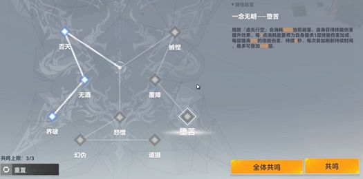 我们来说说一念无明,第一个神格天赋嫉悭能够让阿修罗在获得缚炎的瞬间获取12点的能量值,在我们完成阿修罗的教学关卡之后就能够解锁这个神格并且使用了。第二个神格是覆障,在阿修罗进入缚炎状态的时候释放炎拳千崩技能并且成功命中三个敌人之后的时候可以获取4点的能量值。最后一个神格叫做堕苦,消耗目前50%的能量值释放虛炎行空获得大幅度的技能伤害效果提升。