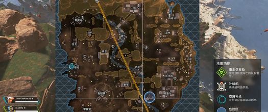 确定好英雄之后进入游戏,此时我们可以看到游戏的地图,游戏内的地图设计也是跟同类型游戏差不多,有着资源更为丰富的地方,不过其中还有一个特殊地点就是复活信标,这个用处会在后面讲到。