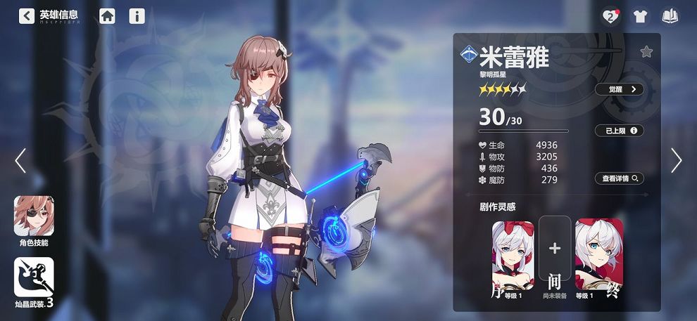 2、和大多数的游戏一样,角色养成总体体现在了角色星星、角色等级、技能等级、装备突破等方面。