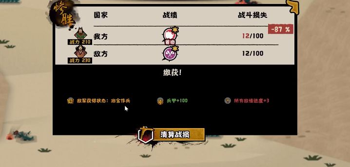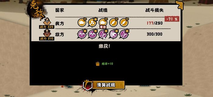 在输给蚩尤部队之后,第二场战斗就是在黄帝部落,这一关的难度并不高,只要把野兽都换成勇士即可,对方在这一轮不会出弓箭手,所以野兽基本就是白给。取得获胜之后下一战就是到陶唐了,这里并没有需要特别注意的地方,将士兵都放在最后一排即可,让对手先进攻。