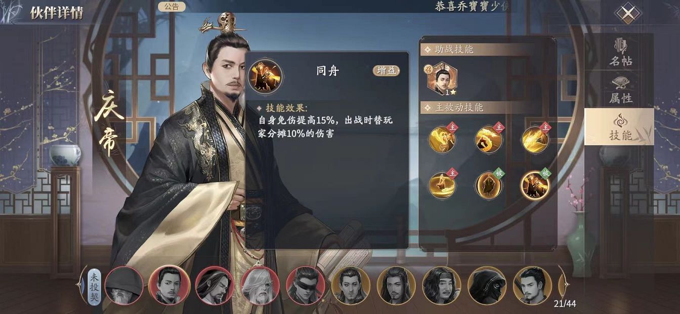 庆帝一共有六个技能,分别是四个主动技能以及两个被动技能: