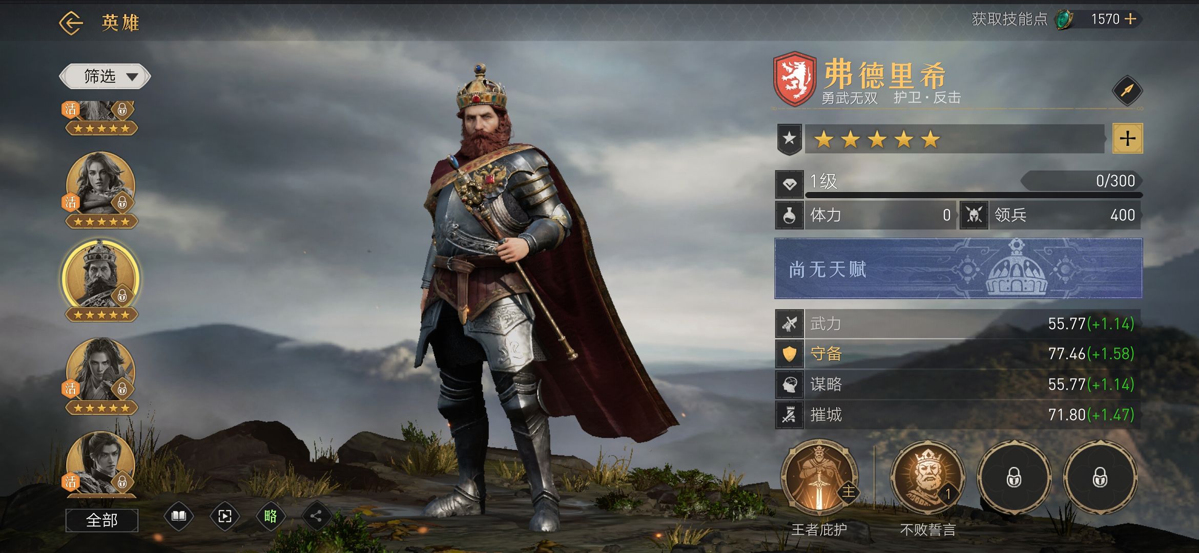 弗德里希在反击队这套阵容中可以降低所有的友军受到的伤害,由于项楚必须在整体兵力下降到50%,而且自身血量比较少的时候才会有一定的伤害,但是弗德里希他的固有技能就相当于霸者重装,可以持续恢复兵力,还会降低受到的伤害,这就更能保证项楚的技能发挥。