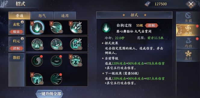 在技能方面,双手剑的两套流派“玄牝”与“归元”,前者偏向输出,后者偏向控制,二者共用一个被动技能阴阳,“阴阳值”随着时间自动增长,攒满后释放下一个技能,会消耗所有阴阳值,并减少该技能10秒冷却。前者适合单人推图和PVP,后者则适合在团队副本中使用,能够提高伤害频率。而单手剑的技能几乎都是主力输出技能,不管是问心剑技还是逍遥剑技的吃辅率都很高,可以配合团辅打出更高的伤害。