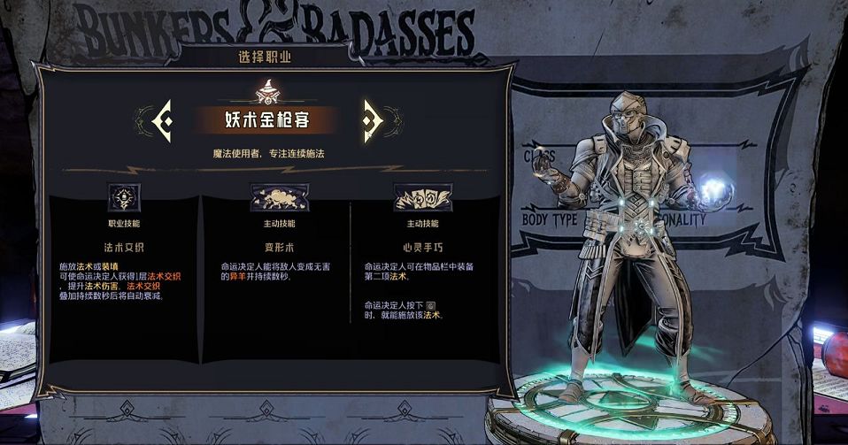 这是一个致力于使用魔法造成伤害的法术职业,被动技能可以逐渐增加自己的法术伤害,主动技能能够将敌人变成一只异羊,更能够提高法术技能的释放频率。