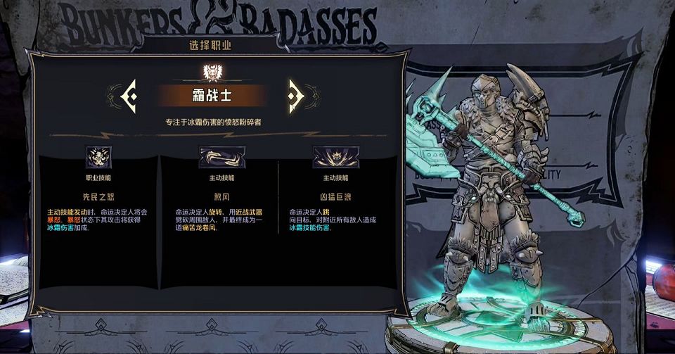 这是一个纯粹又强势的一个近战英雄,每次释放主动技能就会提升自己的伤害,大招像钟无艳的转转转横扫周围的一切敌人,还能跳向指定的目标区域造成大范围的冰霜伤害,对于一些Fps射击类游戏技术不好的玩家来说,霜战士可不就是救赎嘛。