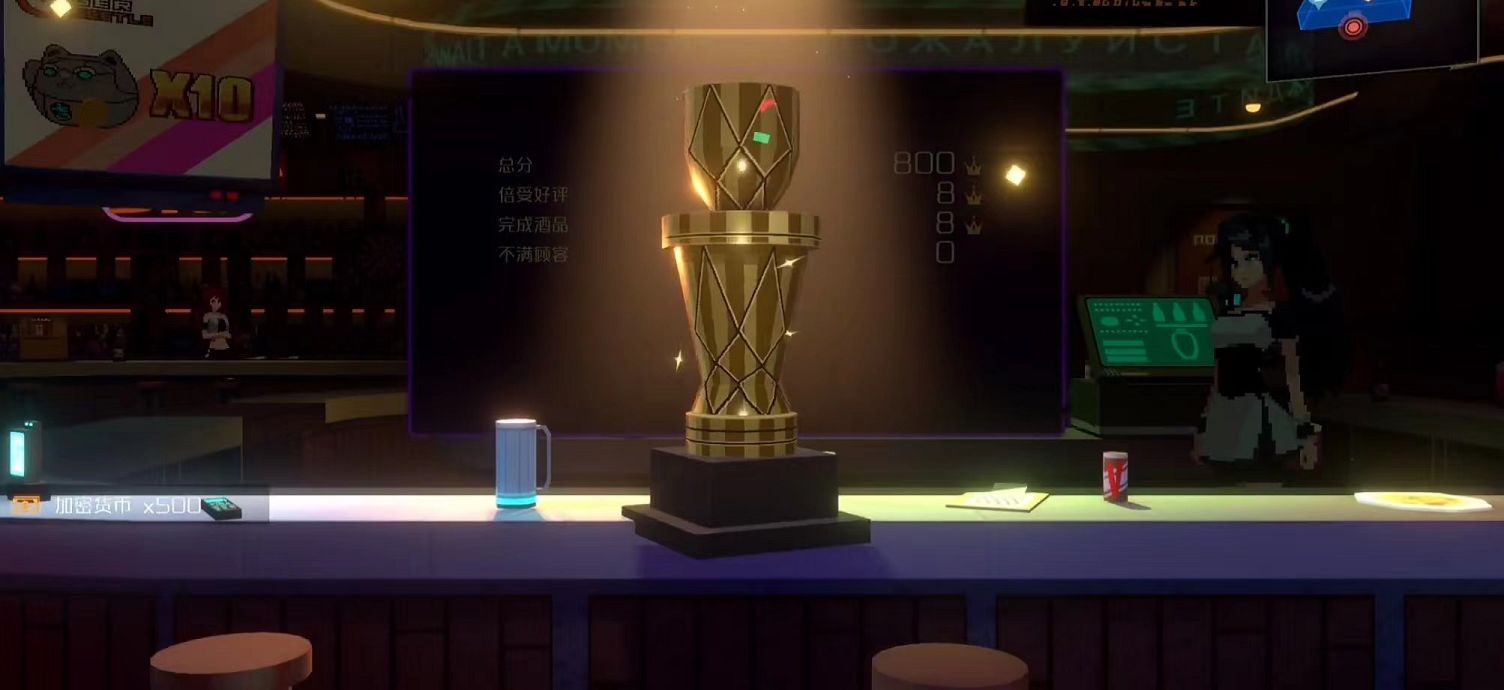 游戏对调酒的判定比较苛刻,反正如果大家想要获得奖杯的话就需要不停地调酒,小编也是几乎要把手都按废了,试了六七次才被判定为成功。