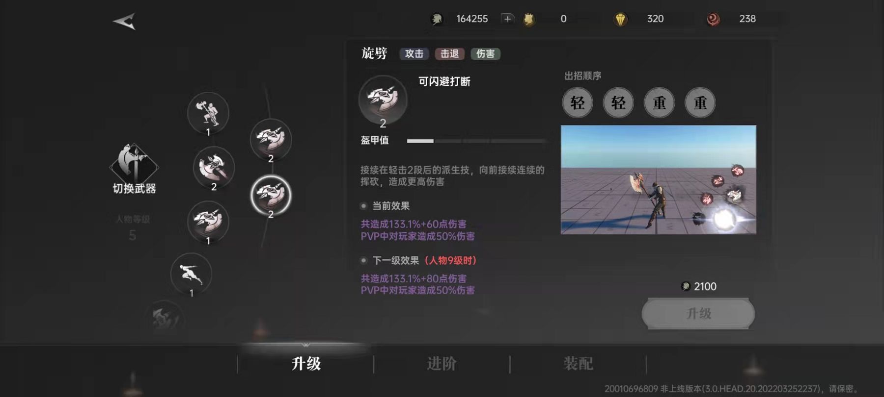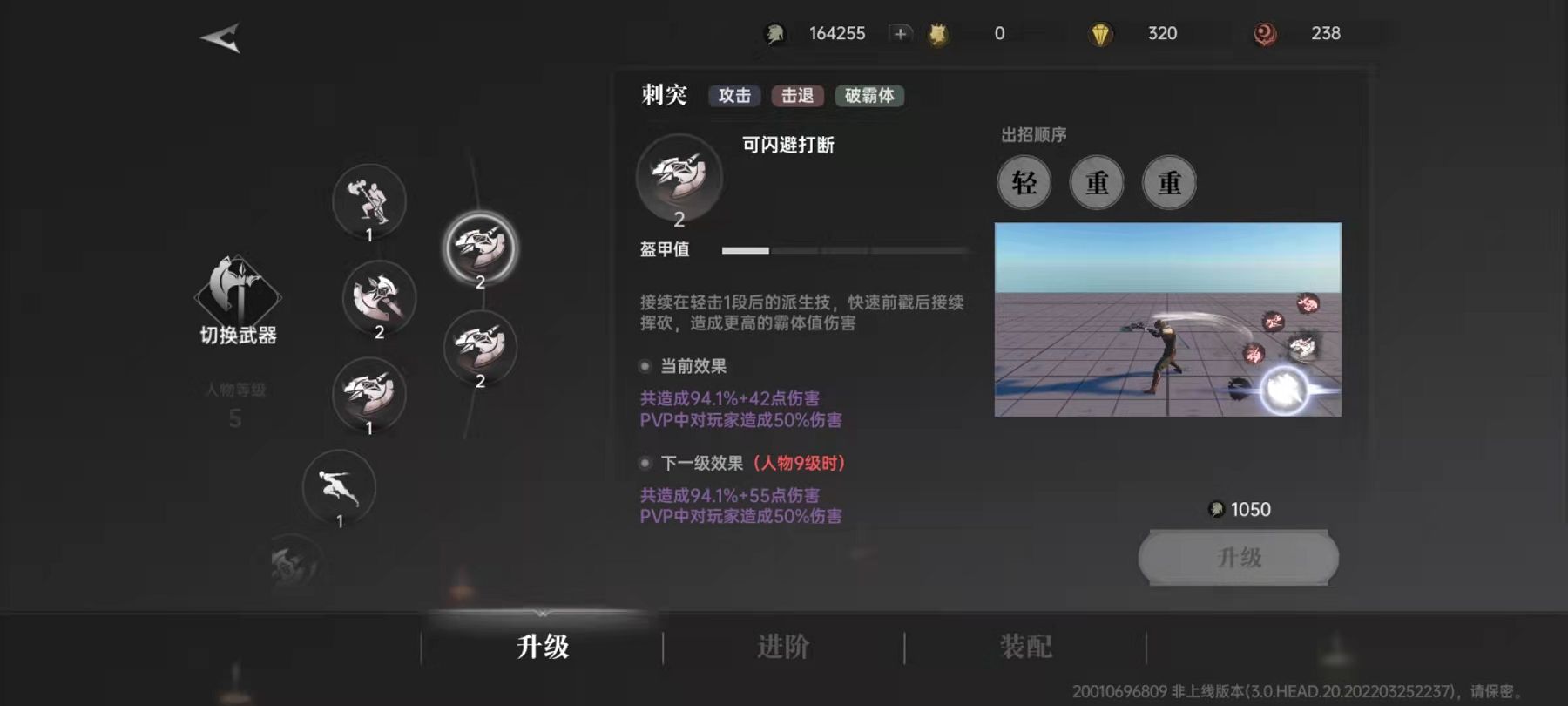 斧子的连招主要是通过轻击和重击组合触发,第1个连招刺突,可以造成更高的霸体之伤害,触发的顺序是轻击、重击、重击。这个技能主要是用于先手击退对方或者是破除对方的霸体。