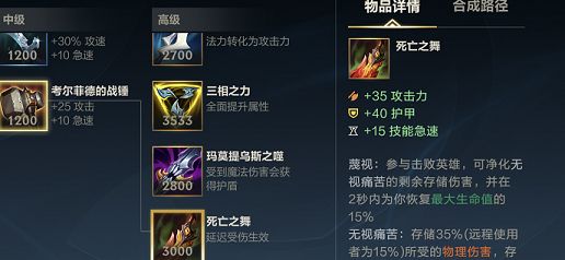装备改动较大的还有岚切、死亡之舞、烈阳魔刃,其中岚切和烈阳魔刃修改了出装路径,后者加强了属性,死亡之舞属于小改版,属性和被动都有较大的调整。