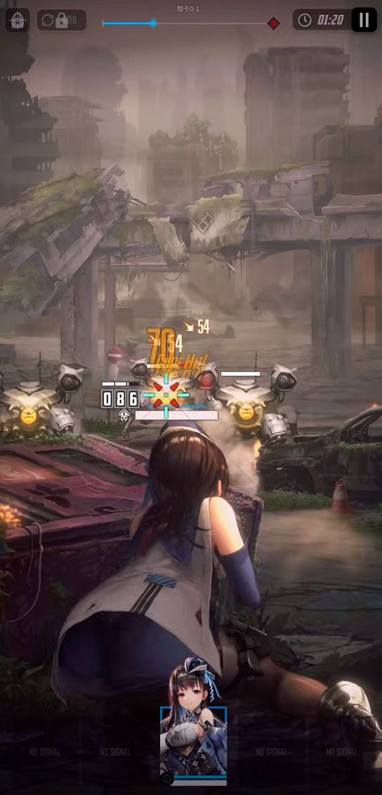 当我们进入游戏之后首先迎来的就是一段剧情,剧情的内容很简单,之后就是战斗了。这部分战斗就是新手指引,我们通过屏幕上的提示可以知道,只要按住屏幕人物就是离开掩体进行射击,松开屏幕就会躲入掩体之中。点击屏幕并滑动就可以实现人物的瞄准了,等到准心放到敌人的身上就可以射击了,游戏中射击是自动判定的,也就是说只要准心放到敌人身上就会自动射击。