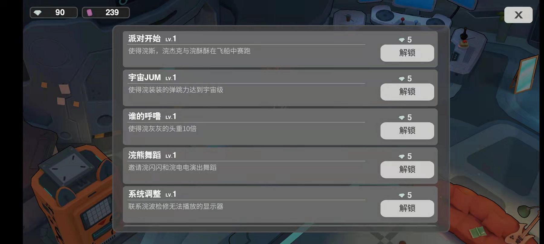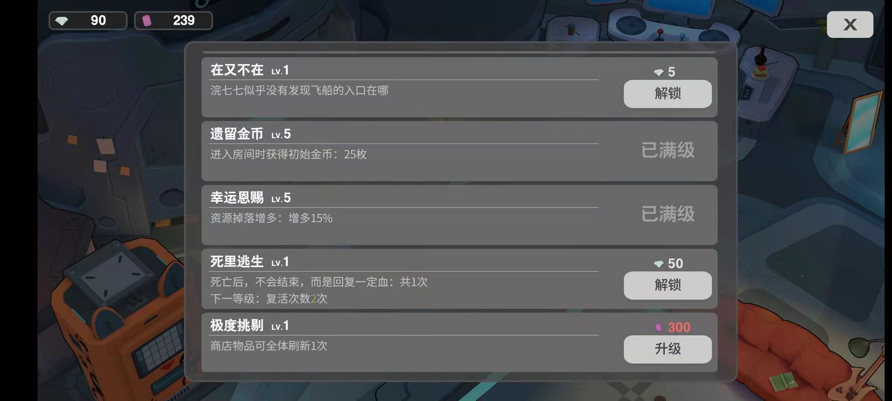 从内测版本目前来看,钻石可以用来解锁一些等待室里的特效:例如可以在等待室召唤很多奔跑的浣熊,或者完成一些装饰性的点缀。比较有用的就是遗留金币、幸运恩赐、死里逃生这几个对游戏内容较有帮助的选项。