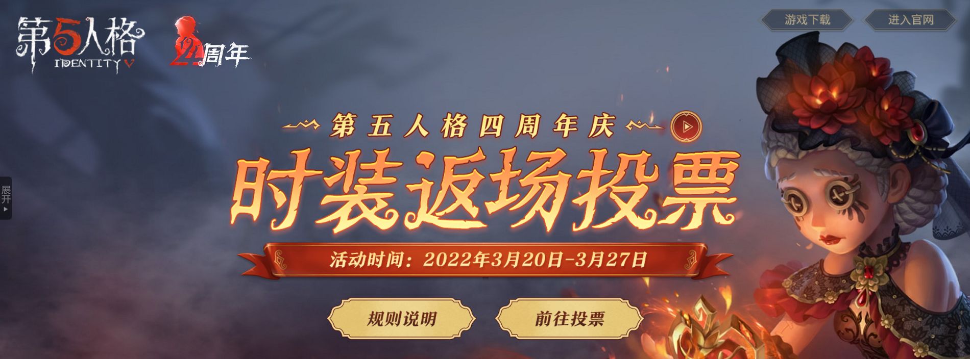 第五人格四周年返场投票?每年的周年庆第五人格都会推出皮肤返厂活动,玩家们可以使用手里的票券让自己喜欢的皮肤重新返厂,这次小编就给大家讲一下第五人格四周年返场投票的相关内容。如果大家还有什么其他想知道的内容都可以告诉小编,小编一定会尽自己最大的努力帮助大家寻找相关内容。