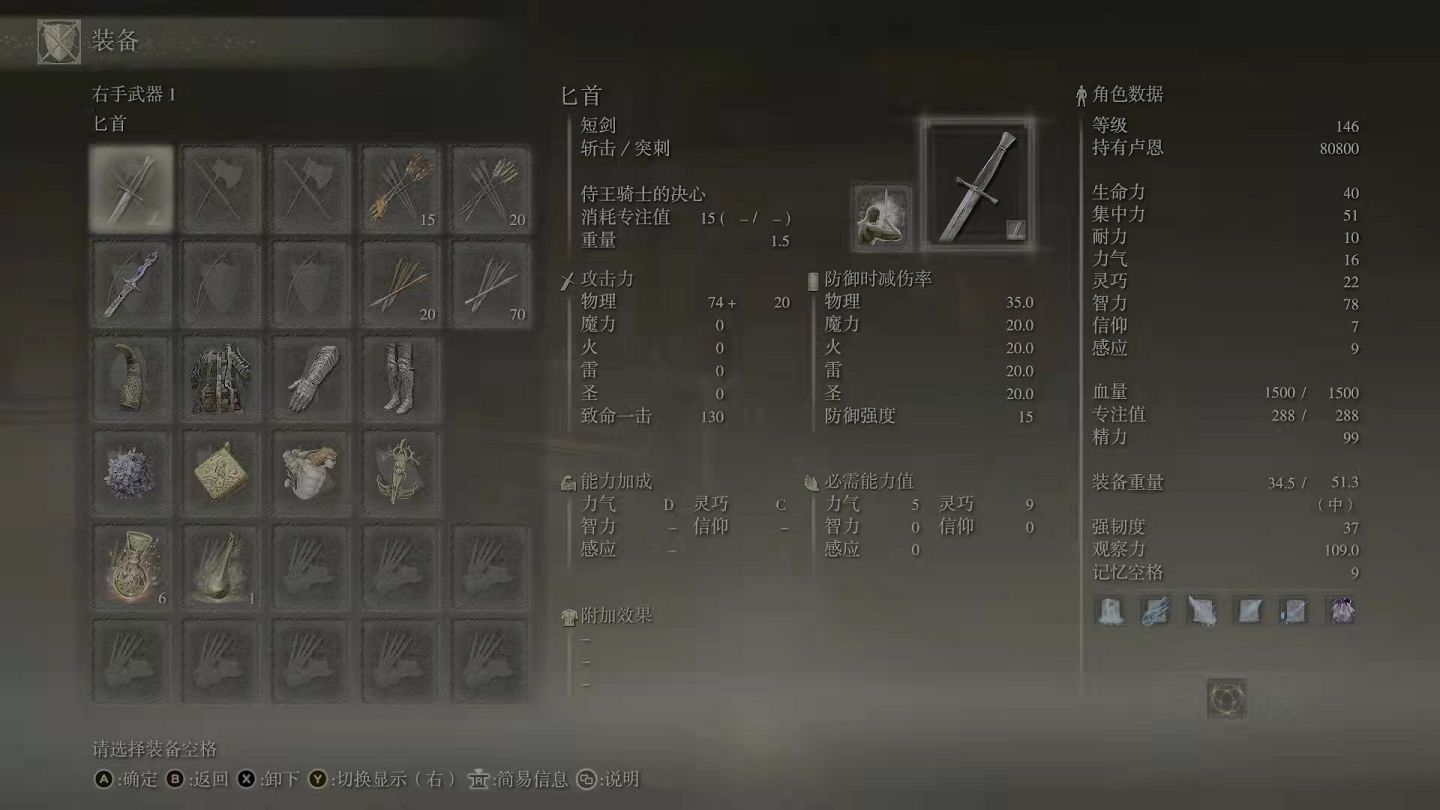 右手的第二件武器玩家可以选择猎犬步伐小匕首,这把武器的有点是在打BOSS或者PVP被对手近身的情况下,猎犬步伐小匕首可以很好的帮助玩家拉扯到安全的位置。法师推图的话,建议携带月隐和猎犬匕首,推图有月隐就足够了,用不到大决心匕首。剩余的黄金旅发印记智信双A非常不错,灵药和护符也是必带的,对玩家伤害的提升不是一点半点。