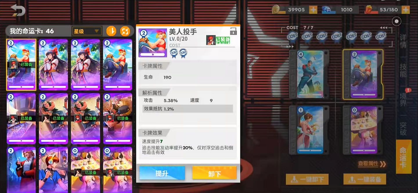 2、小编认为这款游戏中的速度值是最有用的,队伍的总速度是绝对队伍出手先手顺序的。在所使用阵容大差不差的前提下,命运卡解析出来的输出就是决定出手顺序的关键。