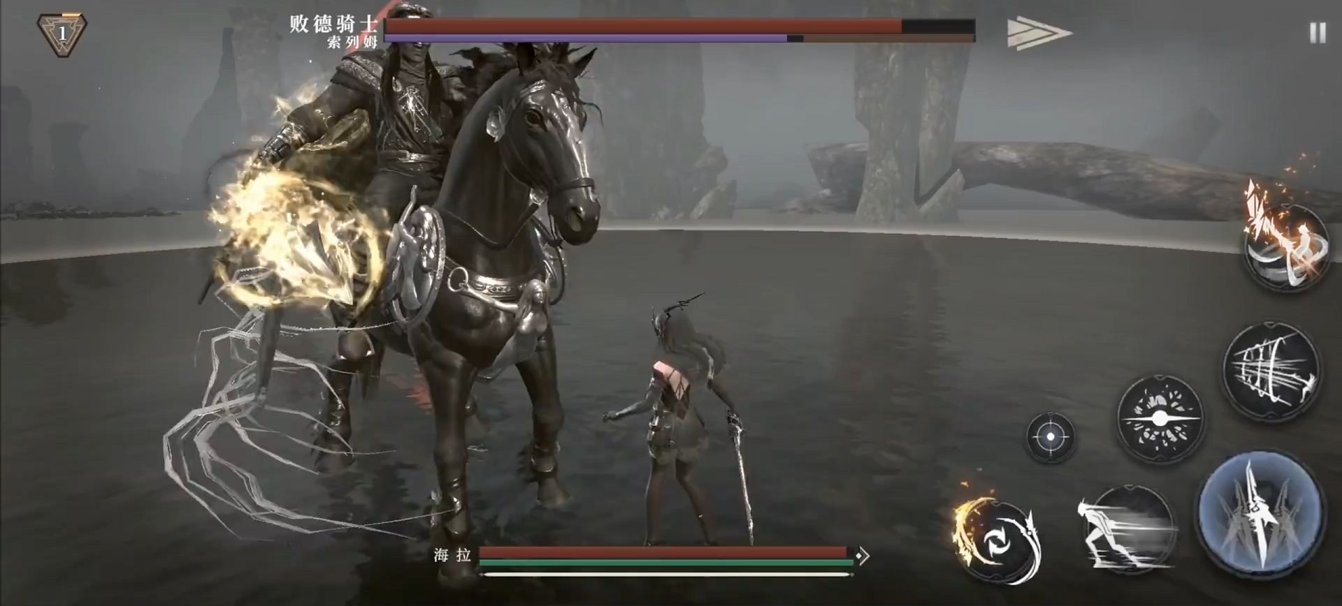 开局的第一关也是让我们熟悉整个游戏的关卡,boss的难度不是很高但也不算低,整体移动速度偏慢但攻速很快,玩家们需要控制好自己位移的时机。boss偶尔会露出蓝色的破绽,抓住这个破绽会对boss造成巨额的伤害,如果没有抓住的话也不要担心,我们只需要躲闪即可,因为这个boss的防御力比较高所以普通攻击对他的作用不是很大。