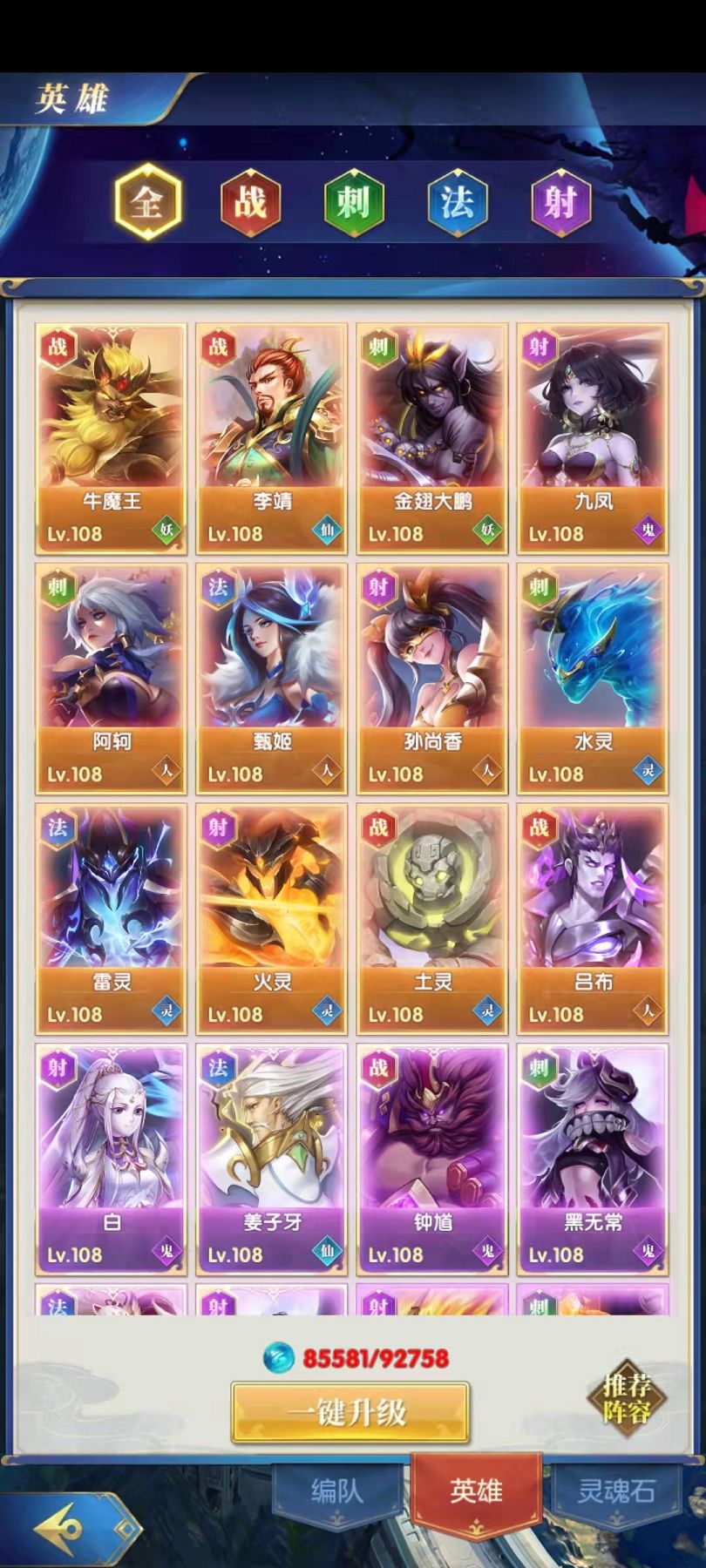 首先是提升英雄的等级,在幻想神话志中大家不需要每个英雄都进行升级,在英雄界面有一个一键升级的功能,点击一键升级就可以将我们手中拥有的所有英雄同时进行升级。并且之后获得的任何新英雄也都会自动晋升到最高等级。英雄升级需要消耗的是灵石和突破丹,灵石可以通过主线挑战来获得,除了过关之外,每天挂机也能获得灵石奖励,开通了终身卡之后,还可以增加快速扫荡的次数。