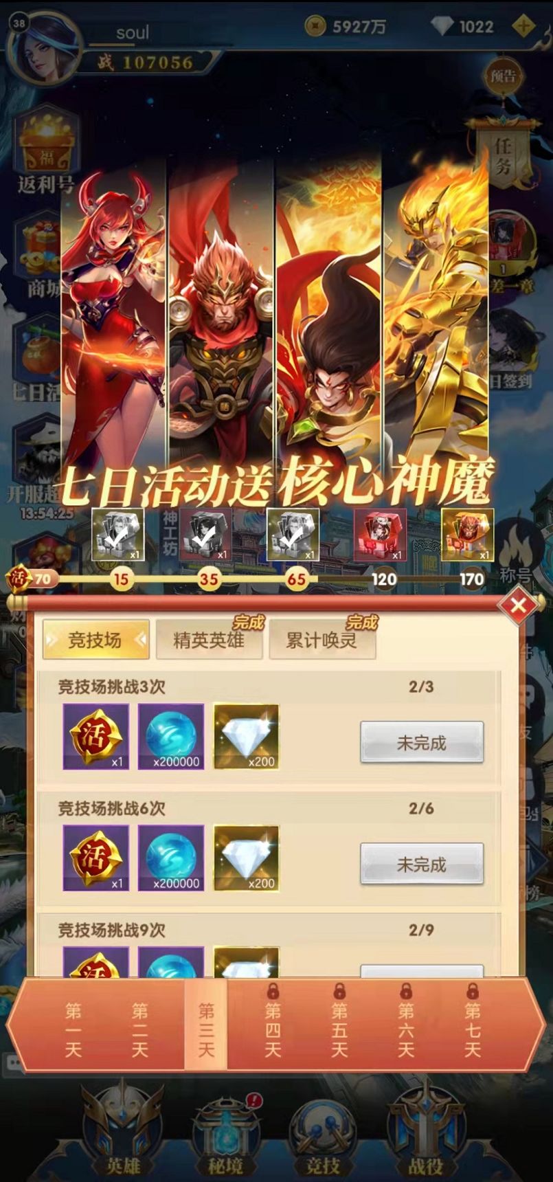 第2个活动是登录游戏的前7天,每天签到都可以获得海量的钻石,经验,各种极品装备等。第3个活动是在公测期间充值之后就可以获得返利号,这是一个终身福利,每天都可以领取钻石等奖励,在专门的返利商店中还可以兑换各种稀有的道具。第4个活动是在新服的7天活动中,会赠送玩家各个流派的核心英雄,这些核心英雄不同于普通的角色,在抽卡中是非常难以获得的,所以这是一个非常好的机会。