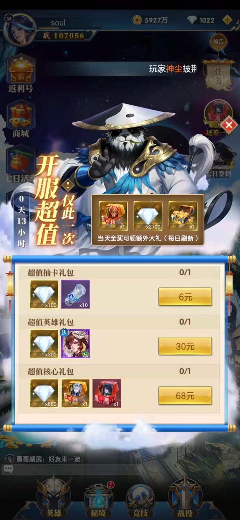 幻想神话志这款游戏在3月18日就已经开始了公测,这比之前公告中计划的3月10日延期了8天。在这7天内策划对游戏进行了进一步的优化,所以现在大家在线上看到了很多全新的玩法和活动,这些都是之前的测试中所没有见到的。正式公测之后,系统放出了很多福利,其中第1个福利就是只要登录服务器,就可以赠送超值礼包,直接为玩家赠送了一个可以升到史诗级英雄的牛魔王,这是一个非常强悍的前排战士,可以提高大量战斗力。