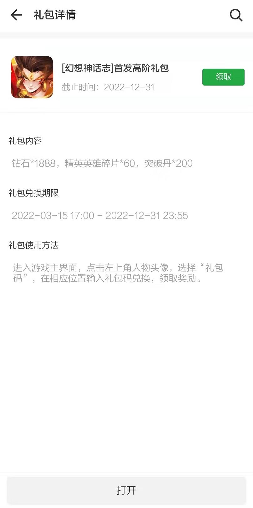 目前可以领到的是幻想神画质的预约礼包,首发高级礼包和首发礼包,其中预约礼包可以获得100000枚金币和一个紫色装备箱,以及十张幻灵券的奖励。首发高级礼包可以获得1888枚钻石,60枚精英英雄碎片和200枚突破丹,首发礼包可以获得50000枚金币,888枚钻石和10张唤灵卷。