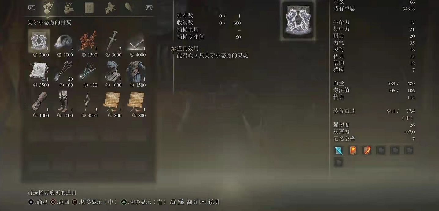第13个是尖牙小恶魔,依然是在魔法学院,正门口篝火处一直朝着南门的方向走,就可以看到一个商人,直接购买骨灰就可以。第14个是猎犬骑士骨灰,来到格密尔英雄墓地,在到达底层boss所在的位置之前会有一个宝箱,守护宝箱有一个精英怪猎犬战士,击杀之后就能获得。第15个是白金之子,来到卡利亚城寨后方之后,在一片墓地中找到。第16个是仿生泪滴,位置在永恒之城的诺克龙德赐福旁边的大教堂,来到二楼之后在楼梯侧需要使用钥匙打开门,开启宝箱之后就能获得。
