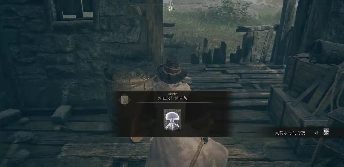 第一个介绍的骨灰是灵魂水母,这个骨灰可以召唤出一个漂浮的少女灵魂,在风暴山丘找到水母区墓碑处就可以捡到。