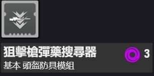 韧性模组以及狙击枪弹药搜寻器,因为你的剑狙需要这个,剑狙哪怕是带了备弹模组最终也只是多出一发额外的X4伤害子弹而已,每一枪满伤害都会消耗4颗子弹,你原本剑狙的备单只够打出5颗满伤害的子弹,所以弹药搜寻器是需要的。