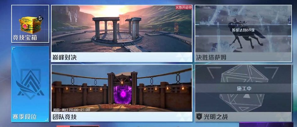 玩家们点击右上角的玩法之后在五个选项卡中我们选择竞技,然后就可以看到巅峰对决和团队竞技两大玩法,巅峰对决是让各位玩家们匹配其他玩家然后两人进行巅峰分数的比拼,团队经济则是和自己的好友一起组队进行4v4的战斗,我们只要先和好友一起组队之后然后进入巅峰对决就会自动进入一个单挑房间了。