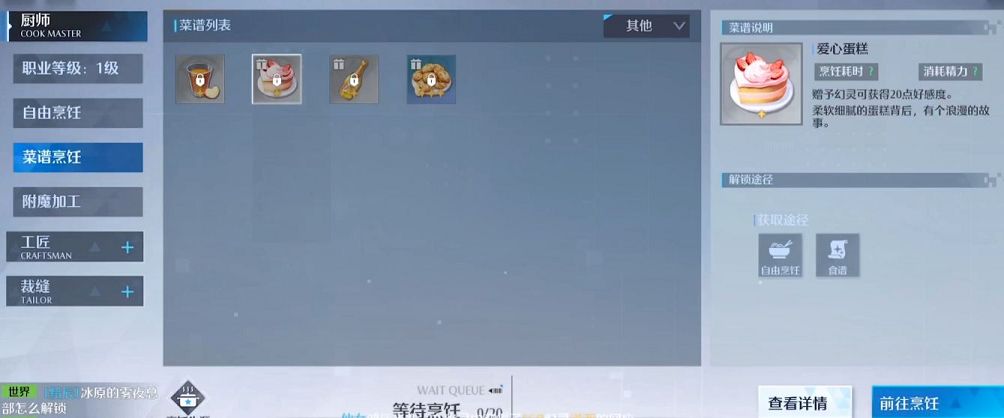 这款游戏里面任何食物的烹饪蓝图都是需要通过完成主线任务来进行获取的,要不然就是等级集齐一定材料之后再烹饪台中盲制作,出现的成品就会生成相应的烹饪蓝图,放到玩家们的烹饪列表里面。