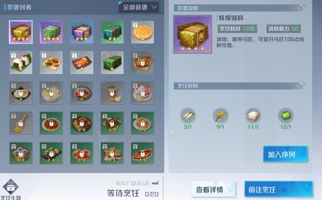 前期玩家们如果没有获得菜谱的话只能随机的将食材放入烹饪栏中,出来什么食物就会生成什么菜谱。烹饪出来的食物可以用来赠与幻灵,增加的好感度可以让幻灵战斗力更强,而且能够获取幻灵碎片,集齐一定数量之后可以为幻灵升星。
