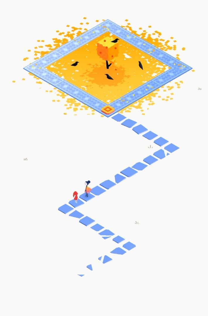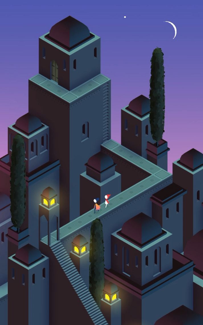 再次来到新的场景,多转几次建筑会来的顶楼出,此时剧情过后,场景又会变化,玩家要上楼按几个按钮并移动,让小人来到新的大门处。开启新的场景,往前走,转动建筑,发现新的大门,进入大门。从门里出来后,一直往上爬,去移动滑动板,通过滑动板来点亮两端灯塔,再前往终点就通过了。