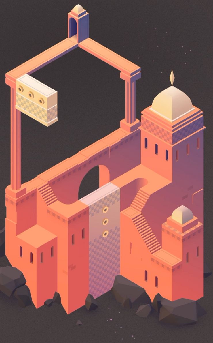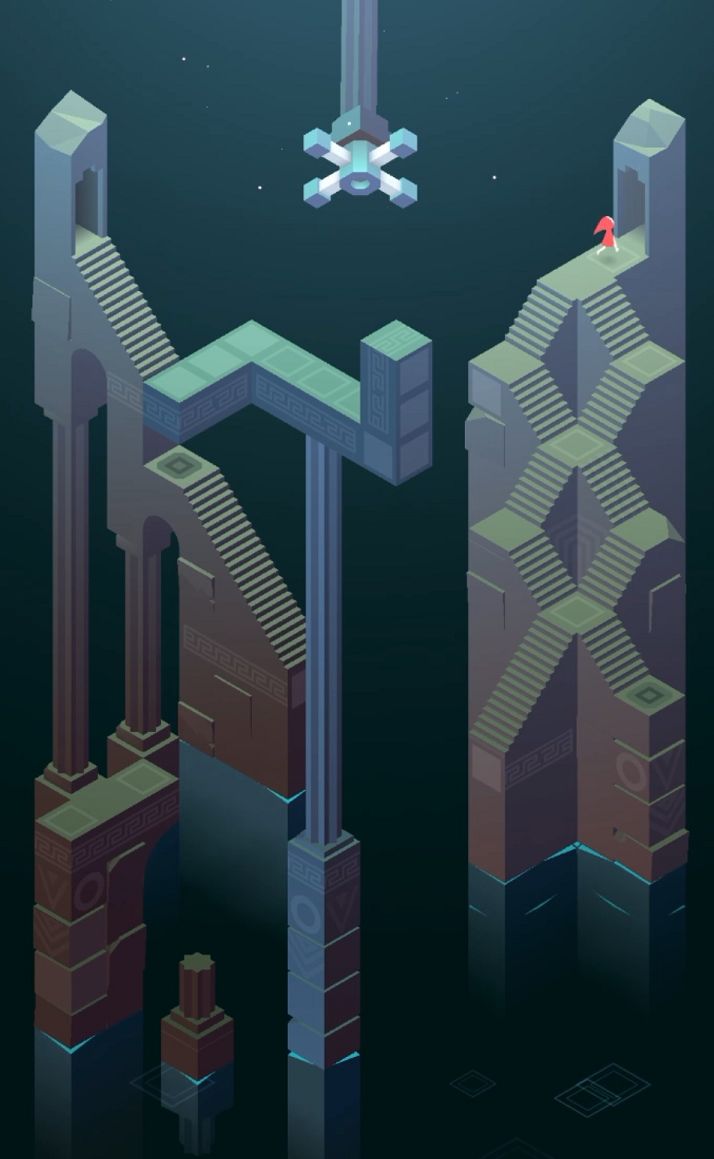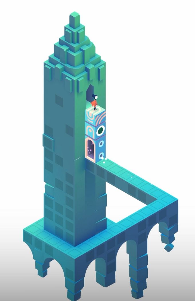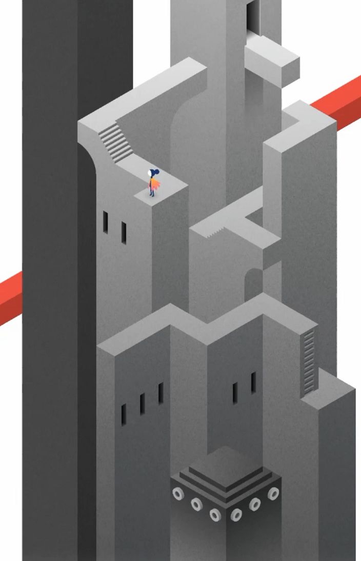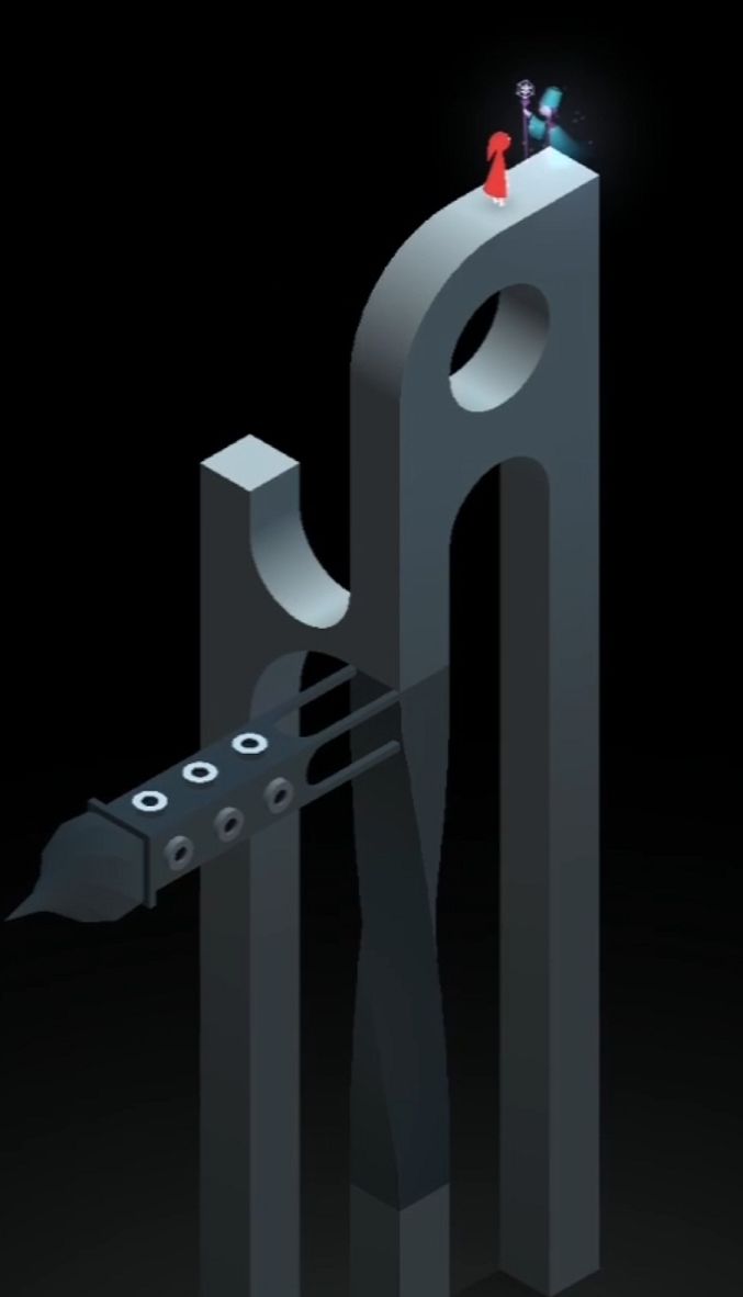 第十一章节:通过转轴,触发机关以此来移动建筑,让小人能够走到顶楼处,除此之外,本章节是需要一定的数学能力,玩家得了解点线面这一基础原理,利用它来通过最后一道关卡。