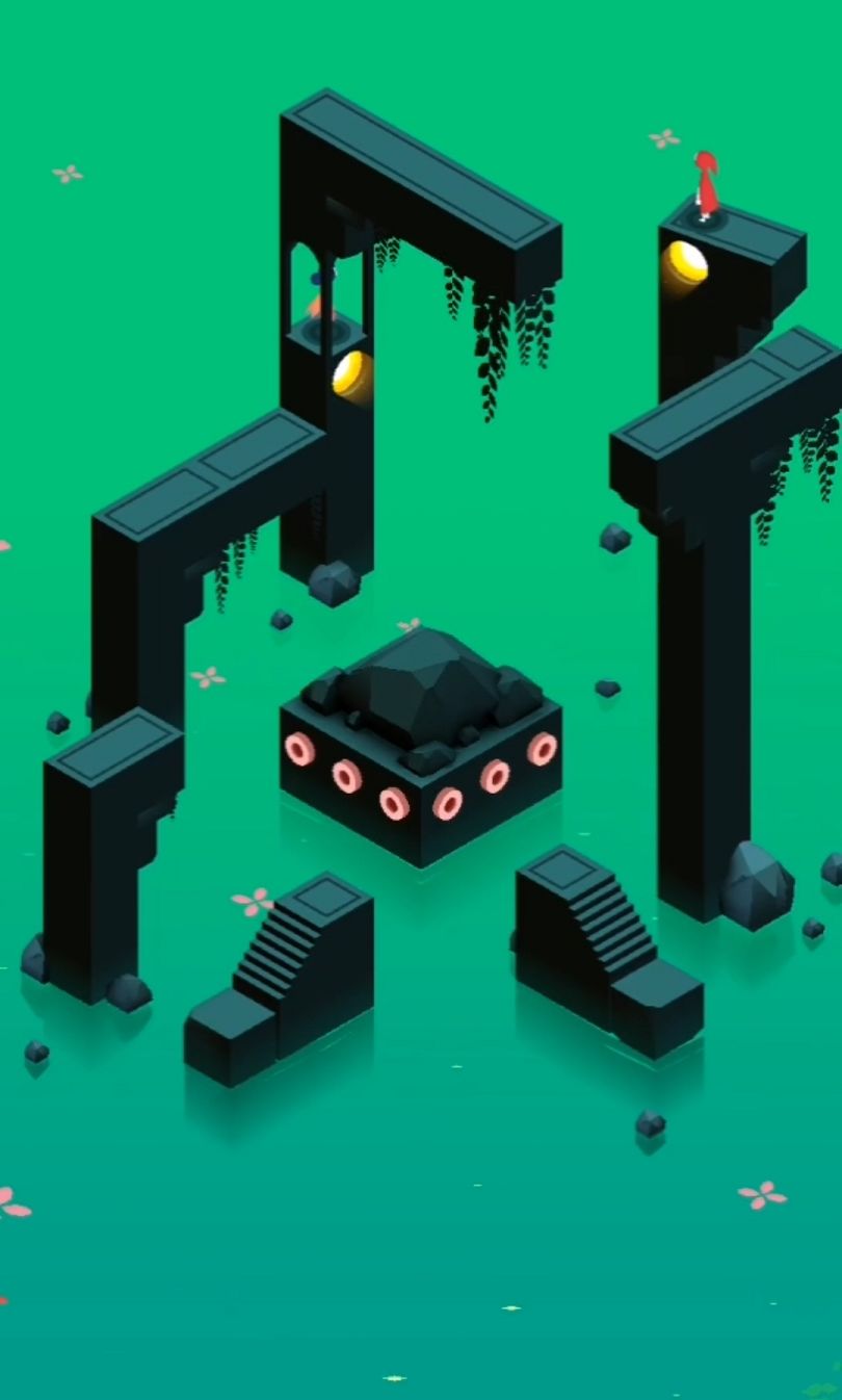 接着旋转黄色建筑,让女儿走到另一个方块上,转动轴承,让女儿走到绿色按钮,此时交换两处不同颜色的按钮,接着从门进入,小人们会被传送至右上方。将黄色按钮旋转,让女儿站上去,再将按钮旋转,并走到红色按钮处。从小门回到左边建筑,交换两边中间的按钮。最后回到右边的建筑,旋转绿色几何图形,让女儿进入右门,旋转机关,萝尔走到右边。到达了最后一个场景中,先让罗尔母女走到绿色按钮处,向上拉动建筑,走到红色按钮处,接着向下,点击终点。