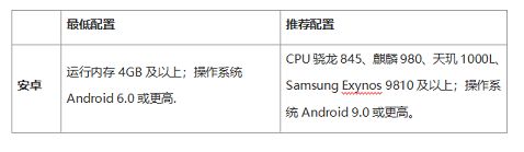 根据官方发布的公告,玩家们的手机最低运行内存必须在4G以上,否则的话在跑图的过程中会非常的卡顿,然后就是操作系统必须在安卓6.0,否则也运行不起来。