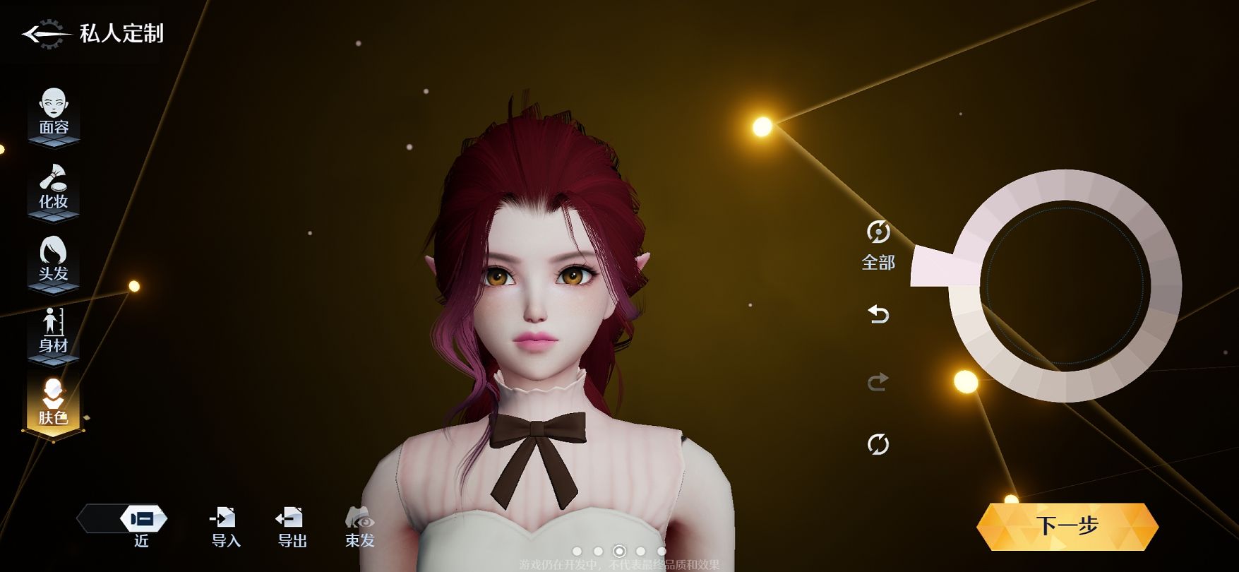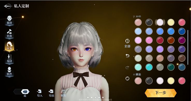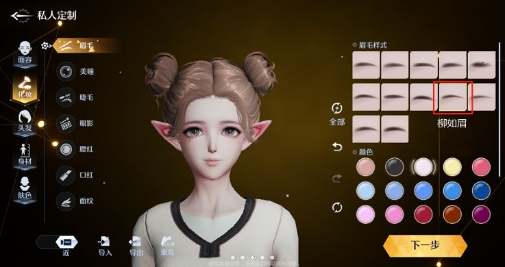 然后就是眼睛,耳朵以及鼻子的调节,这些都是大同小异的,尤其是对于女性角色的妆容调整,特别建议大家选择柳如眉,诺亚之心的眉毛、发色、眼影、美瞳都有着上百种色号的选择,如果打算更精细一点的玩家可以放大之后局部晕染,打造出来异瞳也是非常可以的。