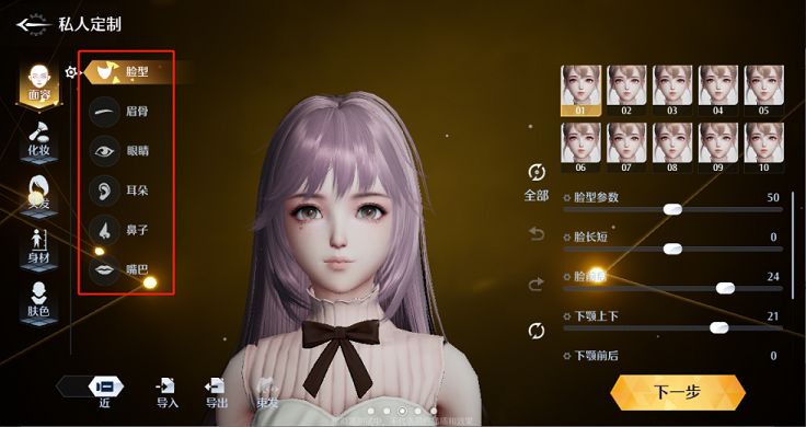 诺亚之心游戏的捏脸也是和其他开放世界冒险类游戏一样,优先要对角色的性别以及身材进行调整,然后就是对于面部的脸型、眉骨,眼睛、耳朵、鼻子、嘴巴还有妆容等部分进行改动,这款游戏强大的捏脸器能够让用户们轻松的根据一些二次元角色捏出自己心目中完美的形象。