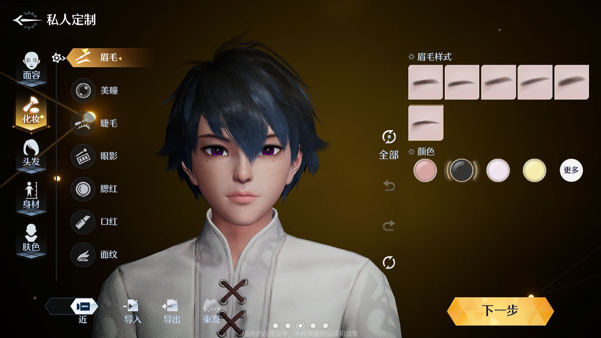 脸型参数推荐:总参数控制在75左右,长短不用变,前后调到10左右,上颚不用变;至于眉毛的弯曲程度就是眉骨,大家可以通过负值或者是正直的调整来改变眉毛的形状,一般男生捏脸的话选择负值,这样看起来更帅气更英气,女生的话大于30小于50即可。